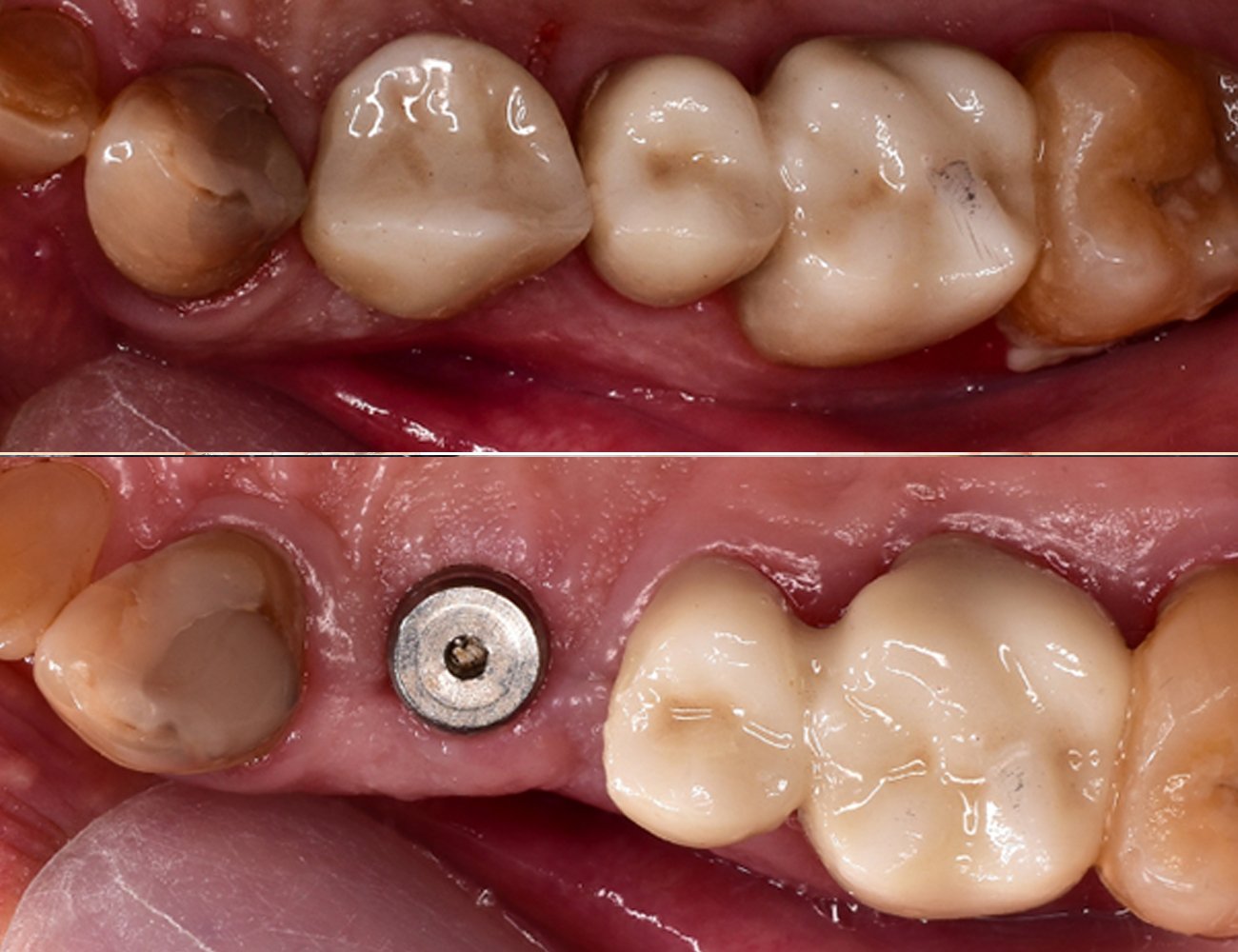 Cầu răng sứ (trồng răng sứ) có thể được chỉ định thay thế cho việc đặt implant để phục hồi 1 hoặc vài răng bị mất. Tuy nhiên, làm cầu răng sứ yêu cầu mài răng khoẻ mạnh để làm trụ nâng đỡ cho nhịp răng sứ nằm tại vùng mất răng. Việc phân bố lực trên chân răng thật trong trường hợp này cũng sẽ không tối ưu. Do đó, trồng răng implant là phương pháp chất lượng cao hơn, tái tạo lại chức năng và thẩm mỹ gần như răng thật.